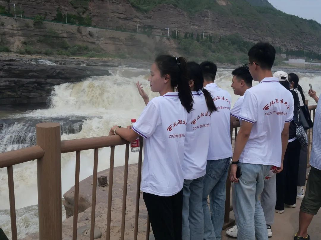 在山西永济鹳雀楼的普法宣讲实践圆满完成后,宣讲团一行人前往吉县壶口瀑布,继续开展实践活动。