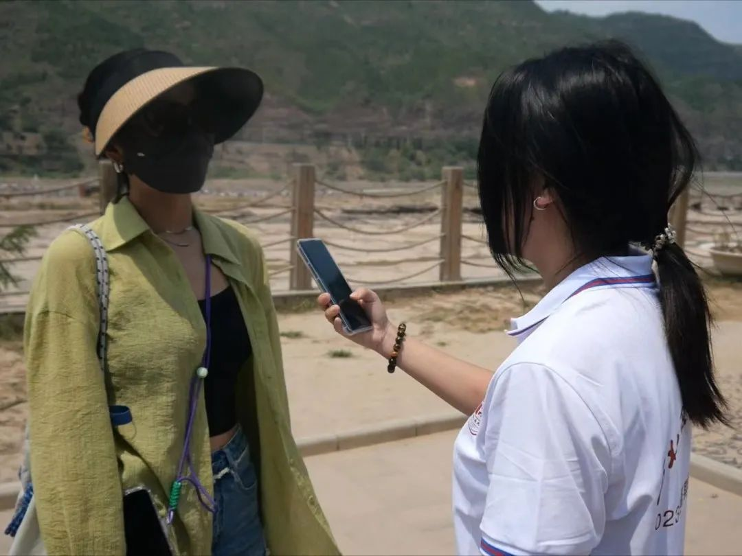 刘俣麟同学借此机会就保护黄河的重要性和必要性以及《黄河保护法》中的相关法律条文规定,向景区内游客进行知识普及,以及就相关法律条文进行解释。