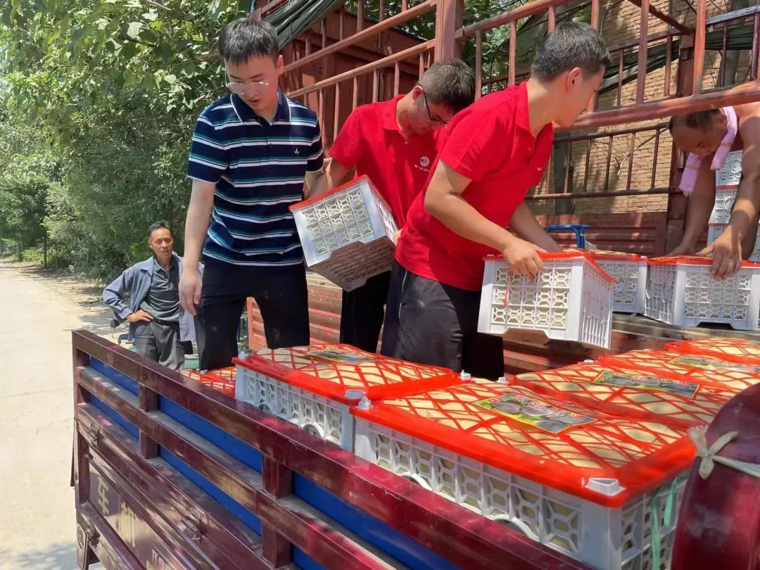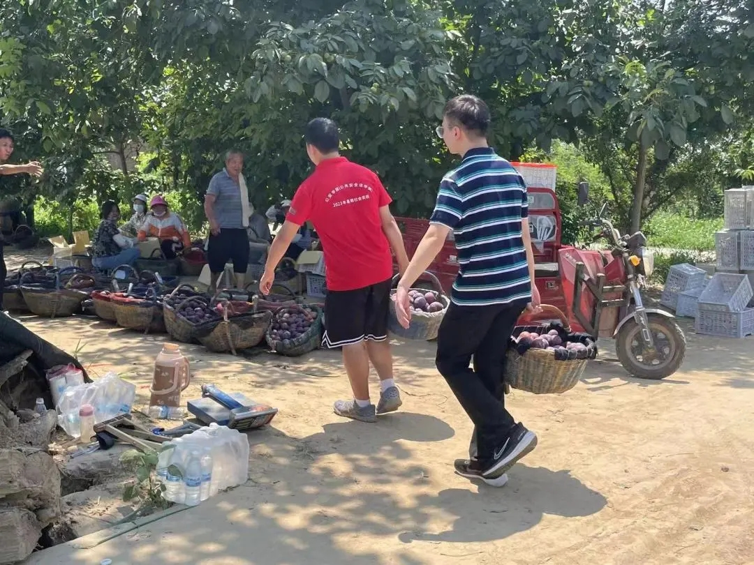 立体循环调研完成后,正值村中农户水果成熟时,调研小组又前往村中果园和果农们一起收获梅子,装箱上车,共享丰收成果。