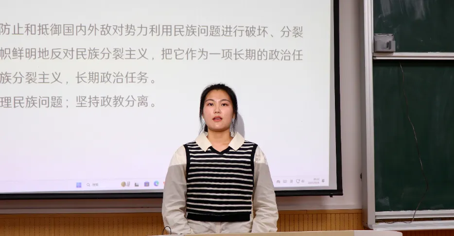 为深入贯彻总体国家安全观,筑牢学生国家安全意识,10月6日晚,第一版主 召开“维护民族团结,增强安全防线”宣讲活动,第一版主 安全教育宣讲团学生代表肖佳欢进行宣讲,2023级全体学生参加。本次活动由2023级辅导员李沛君主持。