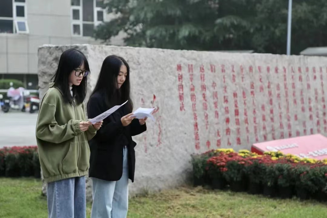 于滢、杨舒涵介绍了校训印的深刻内涵。印钮獬豸的独特设计,象征着法治兼具刚性威严和人文关怀的特点。她们还对校训的含义进行介绍,即:严谨的人生态度,求实的工作作风,文明的道德修养,公正的价值追求。校训既是代代传承的信念罗盘,也是引领青年的精神航标,希望每一位学子都能将其牢记于心,踏实前行。