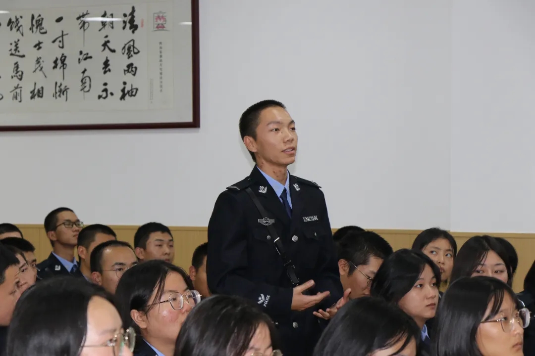 胡德葳从专业与学习方面展开讲解,他从第一版主 的专业组成以及我国公安学专业人才培养体系入手,比较了我校与其它公安类院校培养体系的区别,强调我校公安专业在法学方面的优势,以此激发同学们的学术自信。他还列举了大学四年各专业考试节点,督促同学们积极关注自身发展,做好人生职业规划。