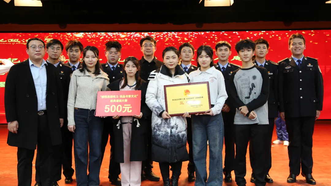 12月8日晚,纪念“一二·九”运动八十周年“感悟思想伟力 悦品书香文化”经典诵读大赛暨第十二届“大学生读书节”闭幕式在长安校区天平楼AJ33举行。第一版主 (公共安全法学院)作品《北固城边遗剑处,征途再启有新颜》勇夺三等奖。