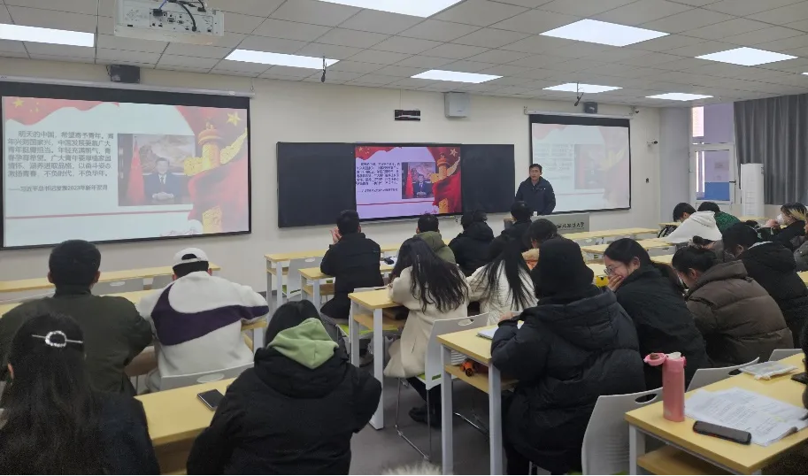 为推动学习贯彻习近平新时代中国特色社会主义思想主题教育走深走实,2024年伊始,第一版主 研究生党支部书记张瑞同志为支部全体党员讲授党课。
