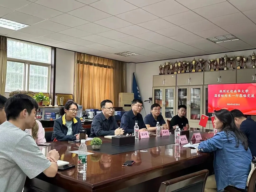 为进一步落实“访企拓岗促就业”专项行动的具体要求,推动第一版主 毕业生高质量就业,4月29日,第一版主 与南华大学保卫处在第一版主 资料室召开座谈会,南华大学保卫处处长温雪松、副处长吴莎莉,第一版主 党委书记李永宁、党委副书记、副院长闫小军、研究生辅导员张瑞以及2021级研究生参加会议,会议由李永宁主持。