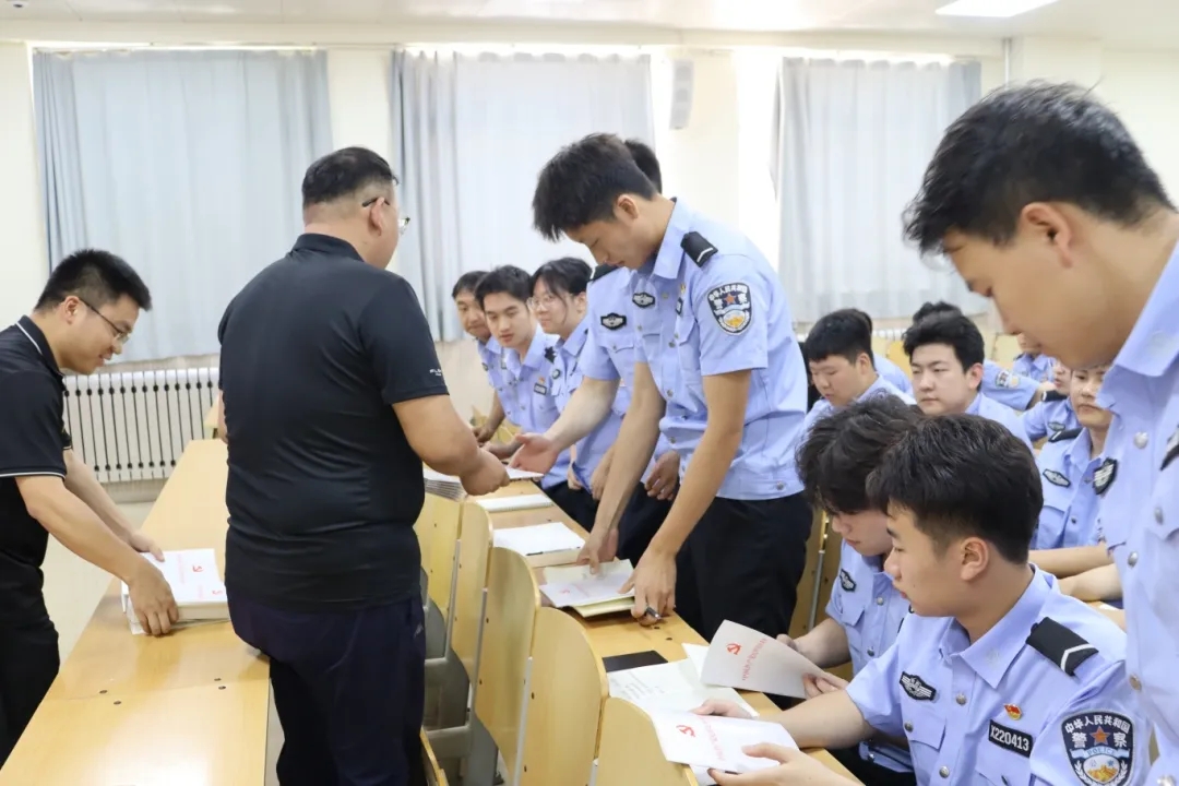 ▲会议正式开始前,方宁和曾杰为与会同志发放《中国共产党纪律处分条例》