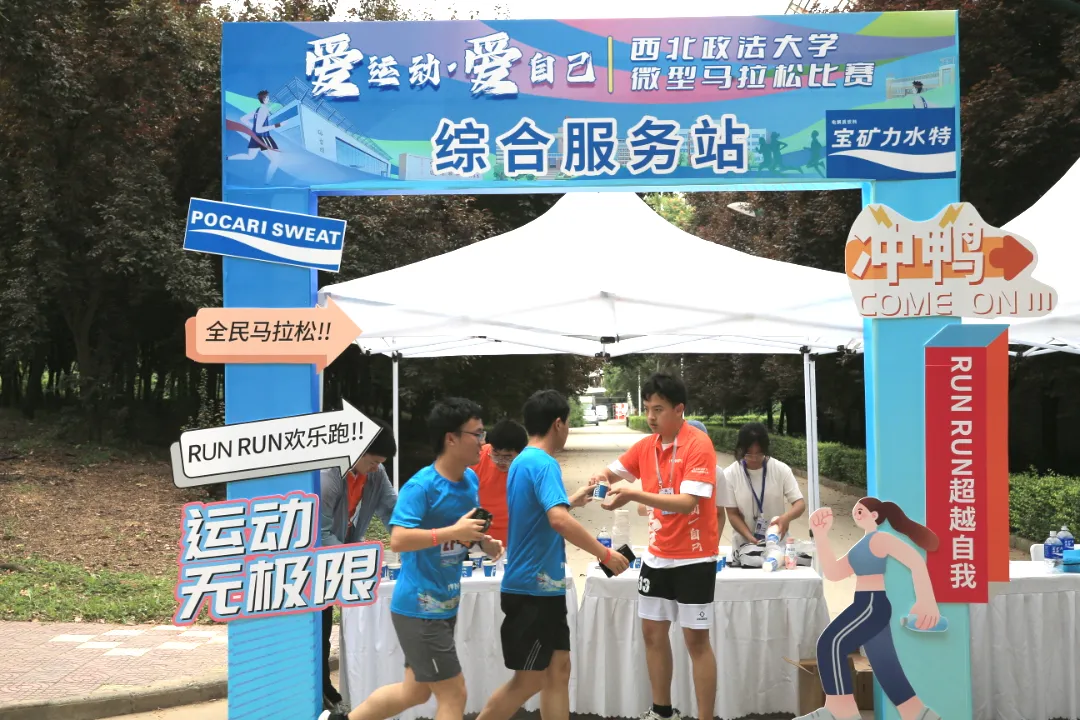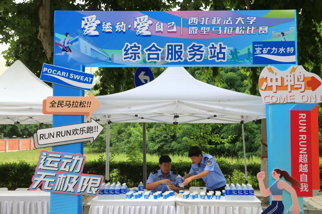 本次校园微型马拉松全程约8公里,设置有5个综合补给站点,包含能量补给、医疗保障、路线指引等功能。起始点设有休息区、纪念打卡点,二百余名志愿者提供相关服务。比赛起点设在天平楼广场国旗台西侧,自起点出发后北向(学校东门方向)行进至博学路路口左拐西向行进,围绕学校外环3圈(选手每圈需在手环站点主动领取并佩戴手环)后至博学路路口左拐南向行进,到达终点(同起点)。
