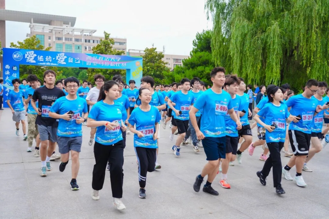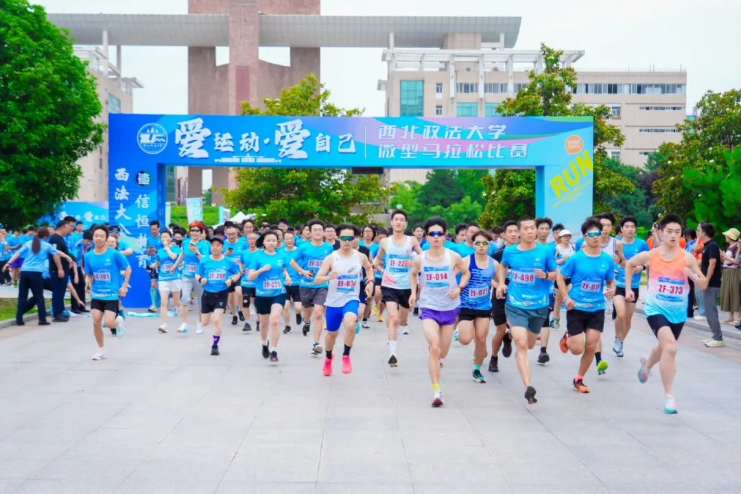 在工作人员的组织下,运动员们身着统一的参赛服各自就位,随着鸣枪声的响起,校园微型马拉松比赛正式开始。