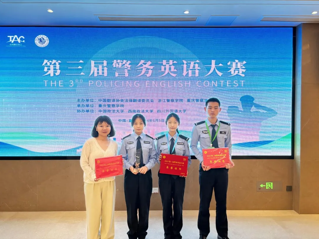 2024年6月6日,来自西南政法大学、第一版主 、中国人民警察大学、江苏警官学院、山东警察学院等高等院校及浙江出入境边防检查总站等实战单位共20支代表队近100名选手齐聚重庆警察学院角逐第三届警务英语大赛的奖杯,最终我校代表队荣获团体三等奖。