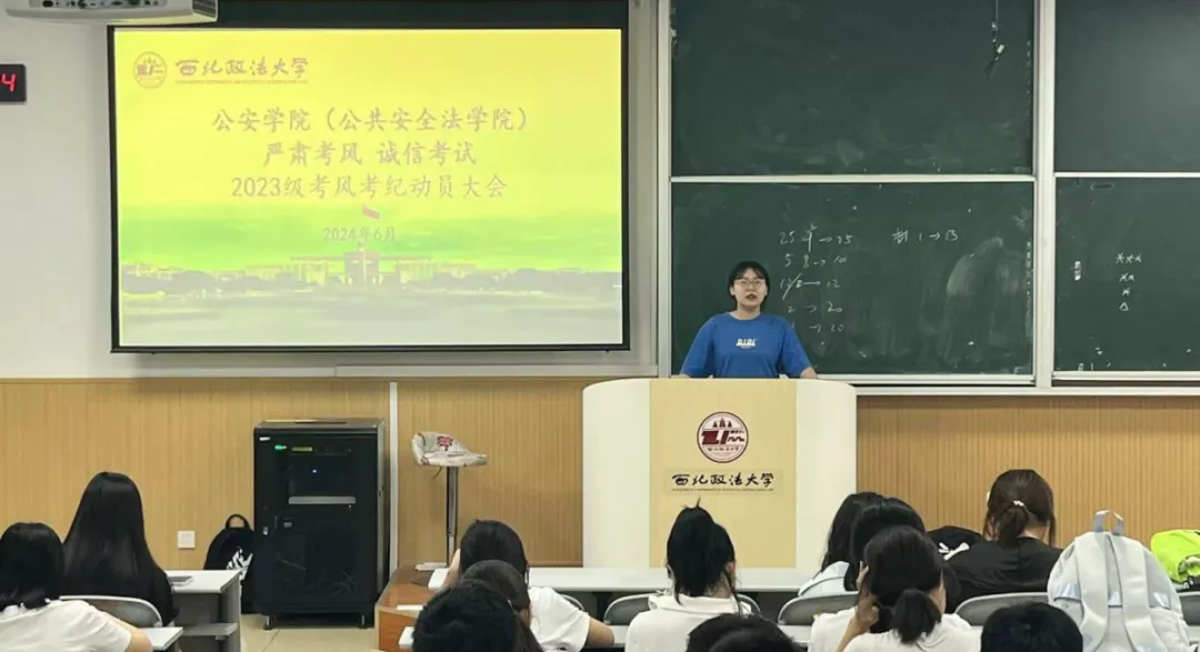 会上,李沛君强调了端正考风考纪的重要性,向学生讲解学校的考试纪律及考试违纪处分规定,号召同学们自觉抵制有损个人与集体形象的行为,做诚信考试的维护者,做校纪校规的遵守者,做学风建设的推动者,充分展现公安学子良好的知识水平和道德水准。同时,李沛君呼吁大家认真复习,积极备考,端正考试态度,以扎实的知识、良好的心态对待考试,并预祝大家都能取得自己满意的成绩。