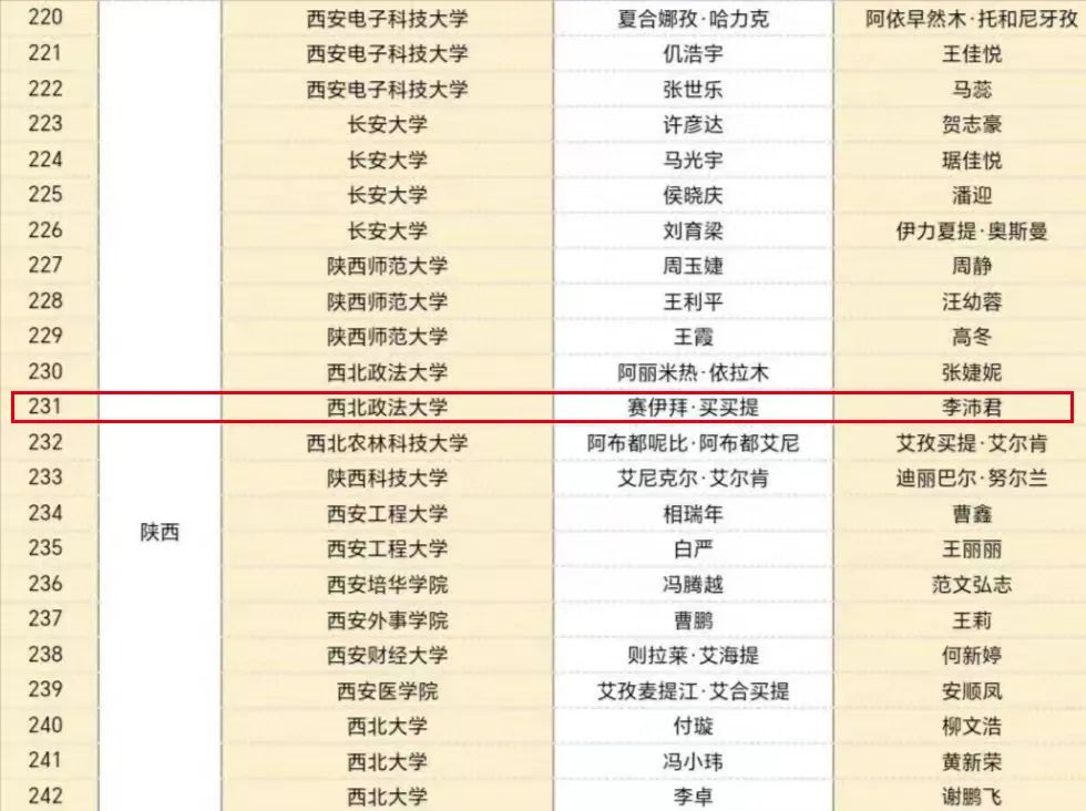 赛伊拜·买买提、唐燕、艾熙媛、杨瑞玥、刘思语、龚禧杰、王天琪、吴美佳、张明涵