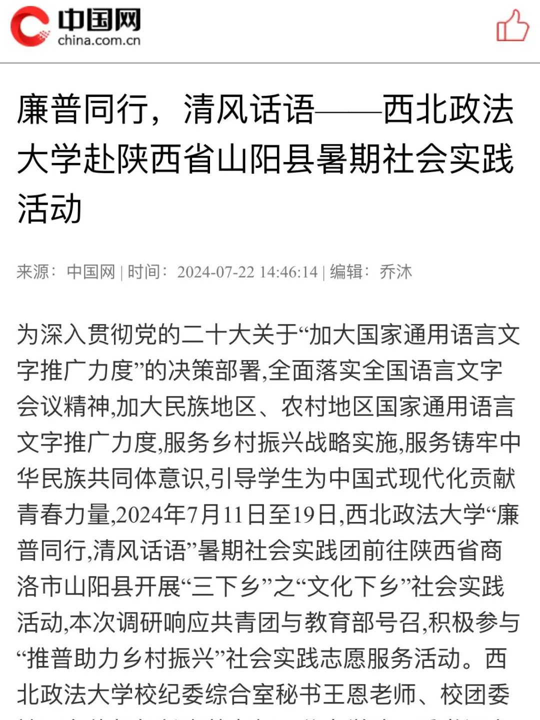 在这次“三下乡”实践活动中,第一版主 党委副书记、副院长李霞,辅导员、实践队指导老师李沛君亲自带队,为实践队提供指导和支持。在老师们的指导下,实践队员们以出色的表现赢得了社会各界的广泛好评,他们聚焦社会热点、投身基层服务、助力乡村振兴,其影响力和贡献受到了中国网、环球网、大学生云报、西安发布、陕西网等多家媒体的关注和报道。他们以实际行动践行社会责任和青年担当,展现了西法大青年良好的精神面貌。