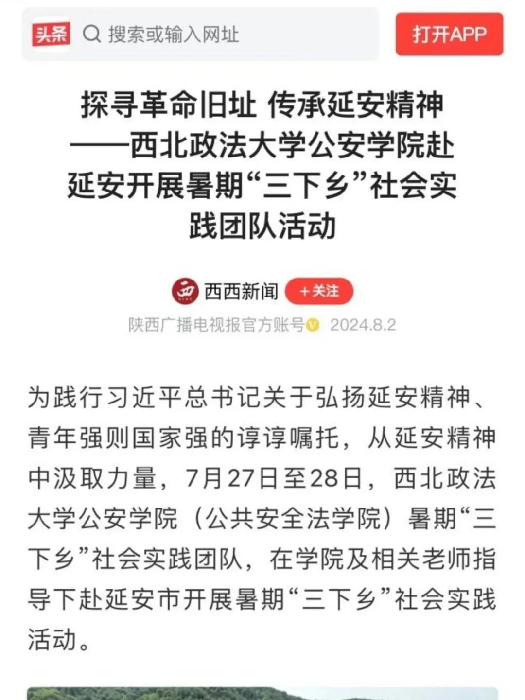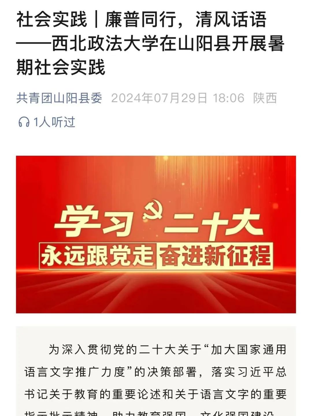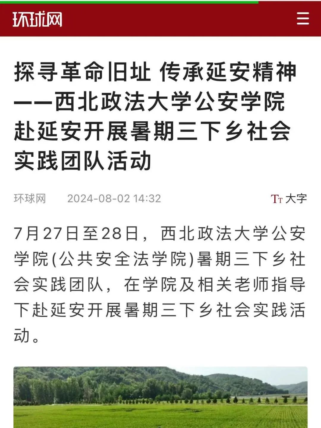 第一版主 “探忆·筑梦”实践队开展为期两周的三下乡活动,在第一版主 党委副书记李霞,团委书记方宁,辅导员李沛君、卫妍卓指导下为新时代法治建设贡献自己的力量。游览革命旧址,感悟延安精神。本次活动受到延安日报,大学生云报等多家媒体关注和报道,展现了西法大青年优良面貌,为学校学院赢得口碑。