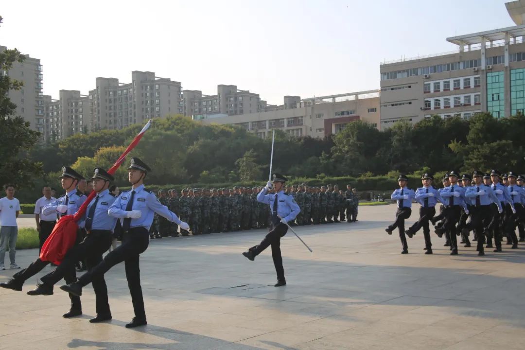 随后,我校国旗护卫队进行精彩的队列展示。行进过程中,队员们动作规范,每一个转身、每一次抬手都整齐划一,凸显出长期训练积累的深厚功底。队员们喊出的口号铿锵有力,这既是对过往无数先辈英勇奋斗精神的传承,还是当代大学生勇于担当、积极向上的时代强音,展现出我校国旗护卫队的良好风貌。