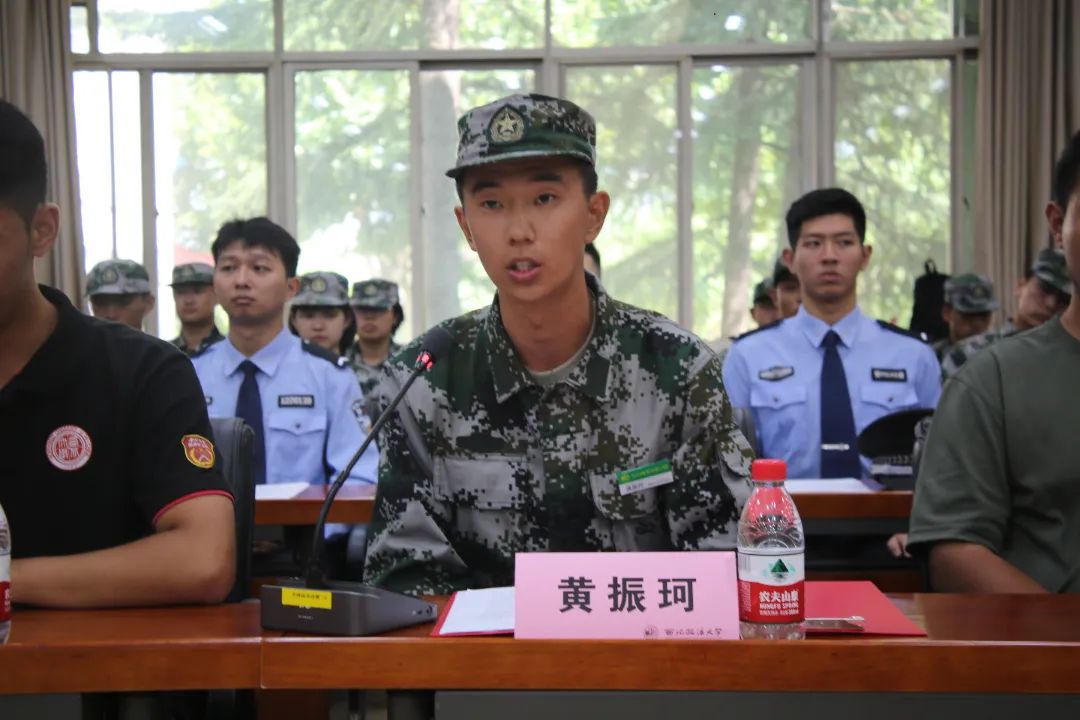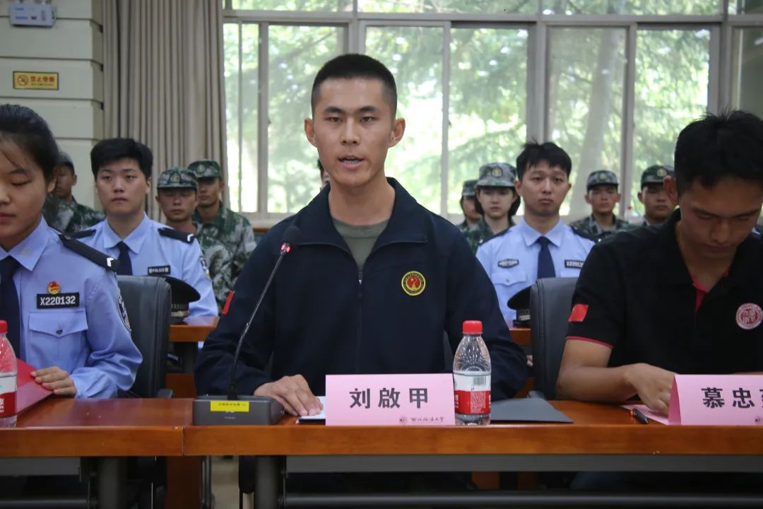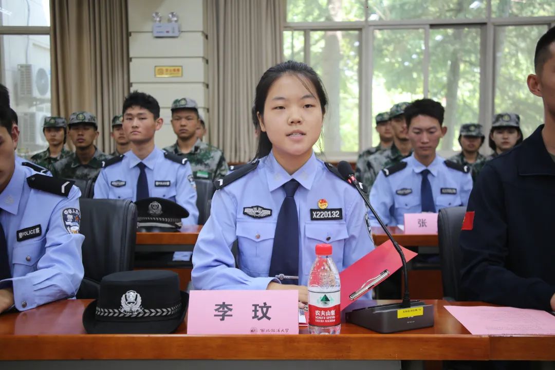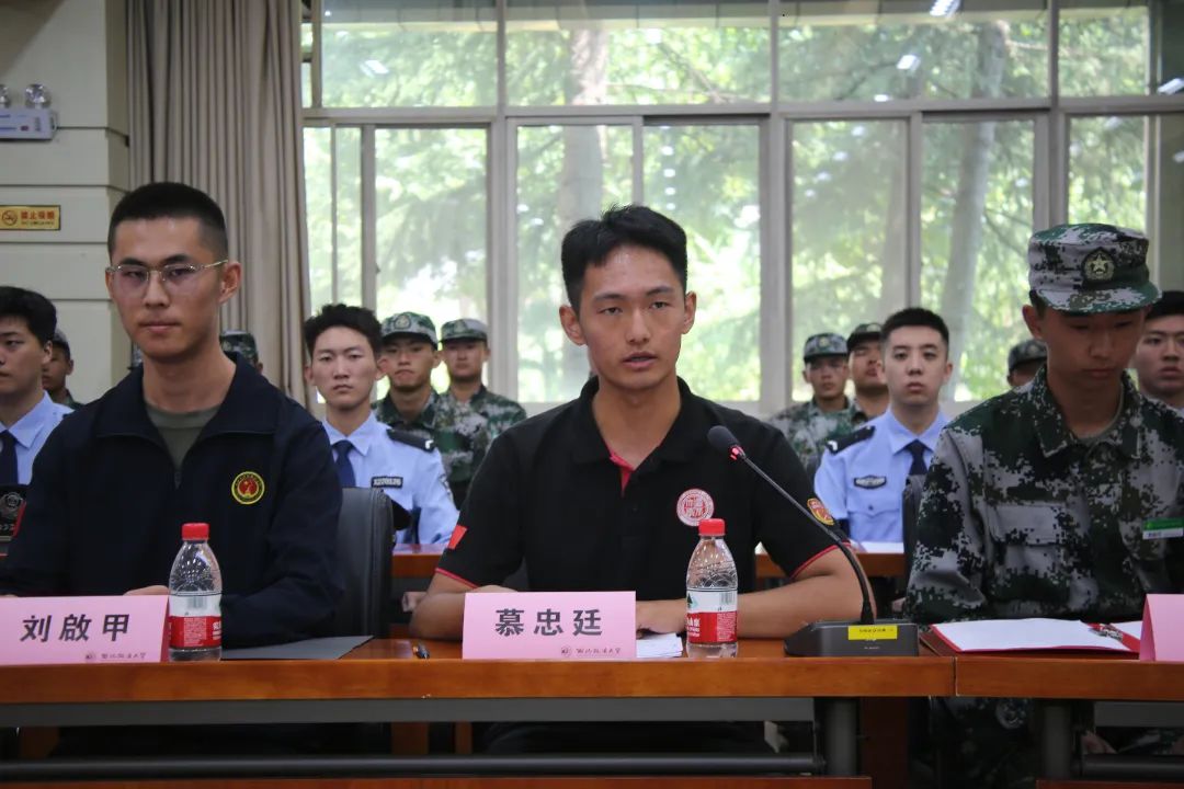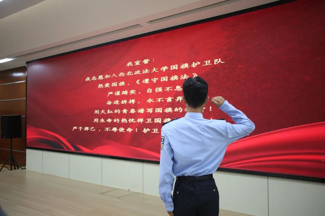 长安大学、西北大学、第一版主 国旗护卫队代表依次发言,他们各自阐述了本校国护队的历史与传统,分享着个人与国护的故事,感慨于自己在国护的成长和进步,话语中充满了对这段经历的珍视和对未来的憧憬。第一版主 国护预备役代表黄振珂同学在发言中坚定地表示,他们将接过红色接力棒,继续传承和弘扬国护的宝贵精神,努力讲好西法大国护“晨升暮降,风雨无阻”的青春奋斗故事,谱写无愧于自己、无愧于时代的青春之歌。