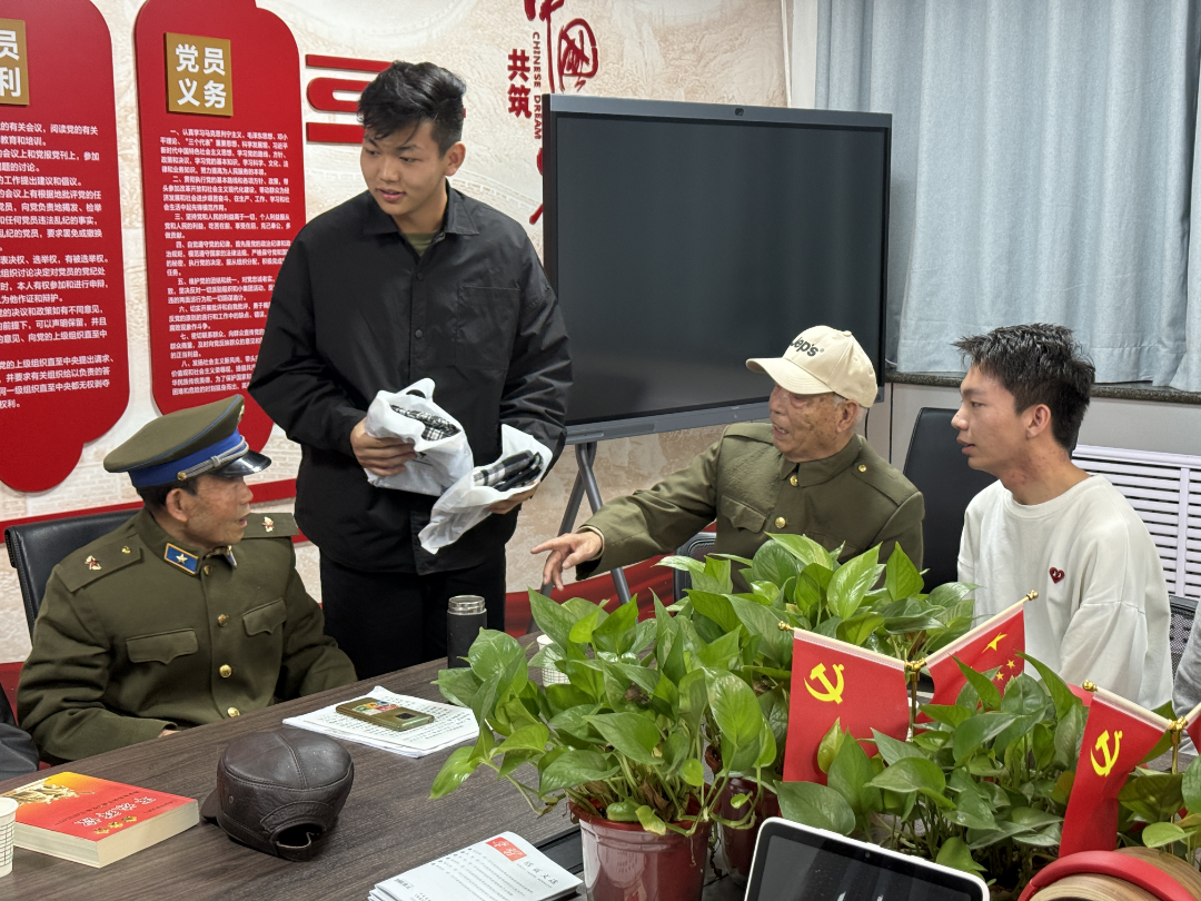 为进一步加强爱国主义教育,传承和弘扬爱国主义精神,厚植爱国情怀,在抗美援朝74周年纪念日来临之际,第一版主 学生第二党支部前往雁塔区漳浒寨军干所社区退役军人服务站开展“追忆峥嵘岁月,赓续红色血脉”主题党日活动。