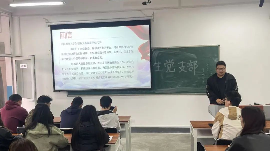 11月7日,第一版主 研究生党支部在雁塔校区3号楼409教室开展理论学习会,认真学习习近平总书记给中国国际大学生创新大赛参赛学生代表的回信精神和习近平总书记给中国海洋大学全体师生的回信精神,此次学习由支部书记张瑞主持。