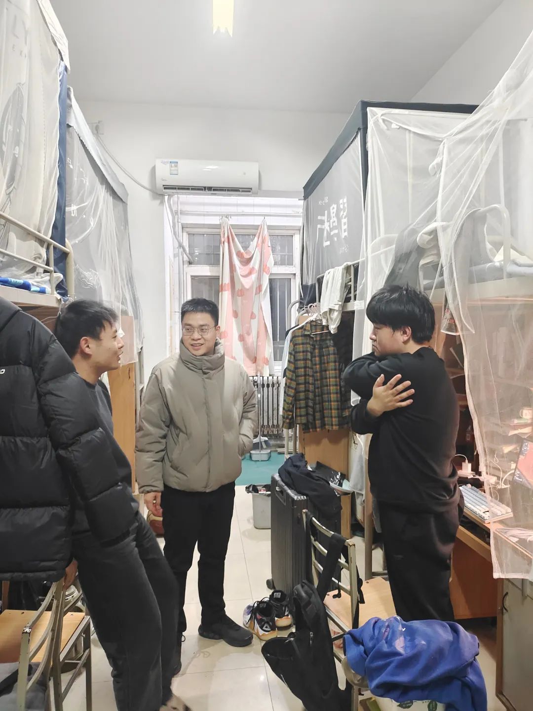 走访过程中,学院领导及辅导员与学生进行了深入交谈,详细了解了大家的假期生活、返校适应情况以及新学期的学习计划,并鼓励同学们在新学期树立明确目标,积极参与校园活动,保持良好生活习惯,营造温馨和谐的宿舍氛围。同时,辅导员对宿舍公共区域进行了安全隐患排查,对设施设备的运行情况及卫生环境展开全面检查。此外,针对同学们提出的问题,辅导员及时记录并反馈,为学生新学期的学习和生活提供了更加坚实的保障。