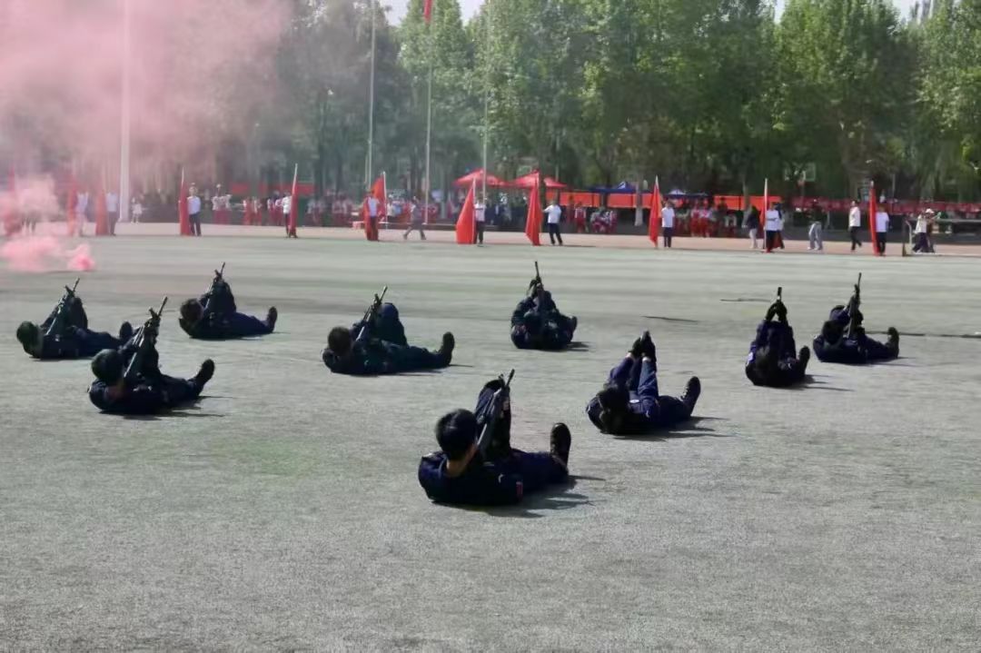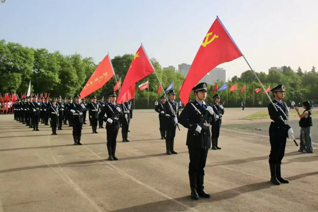 晨光中,国护队员们身着警服,银色的警徽与朝阳交相辉映。在全体师生肃穆的注视下,国旗护卫队身姿挺拔,引领各代表队方阵入场,拉开了运动会开幕式的序幕。