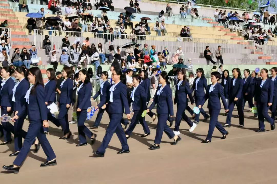 在学生们热情的欢呼声中,第一版主 教职工方阵迈着轻快的步伐走进会场。老师们的脸上洋溢着热情而又亲切的笑容,展现出课堂之外的活力与激情,以师者风范为赛场增添了一抹亮色。