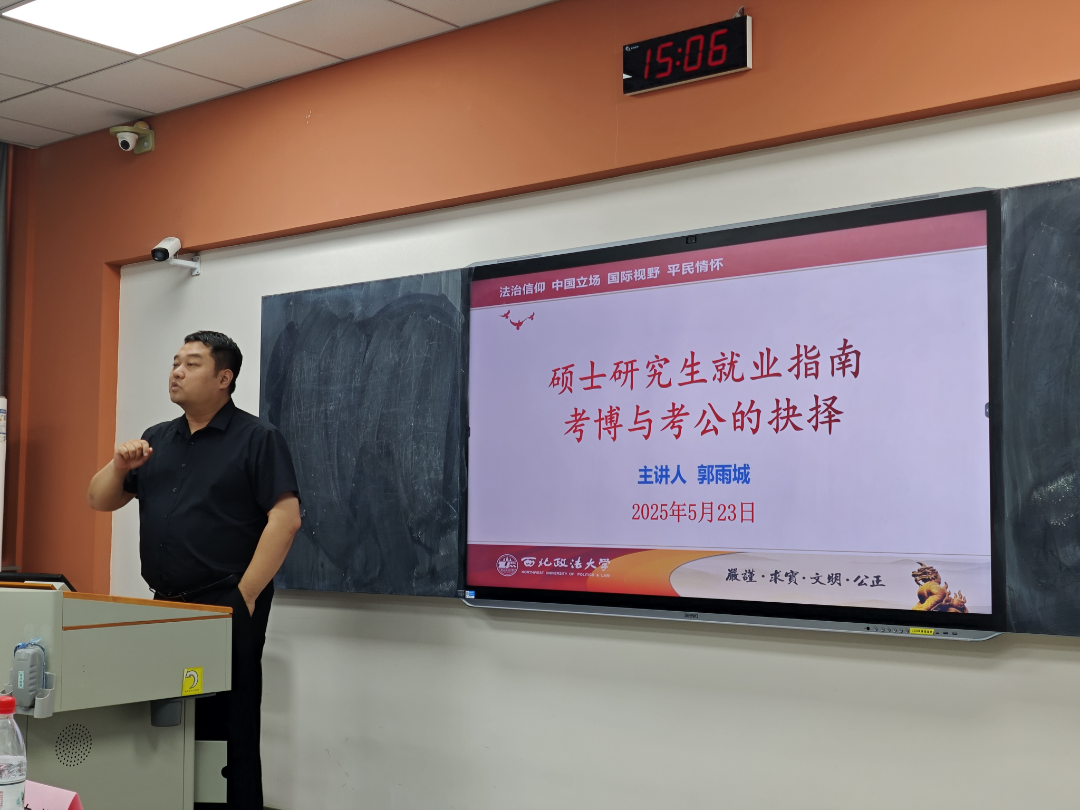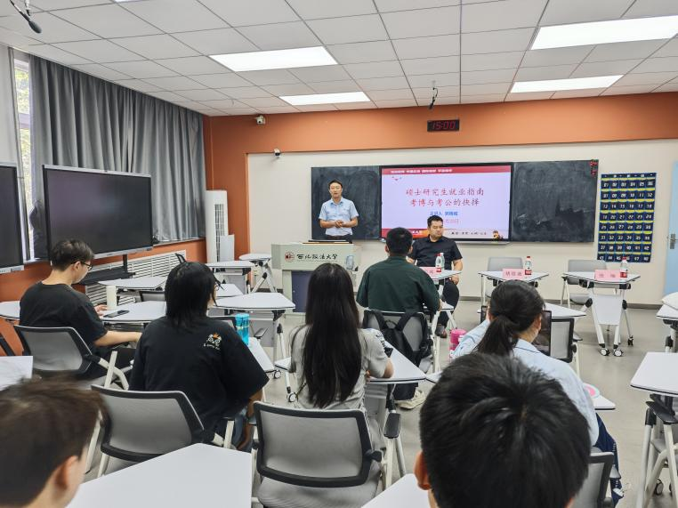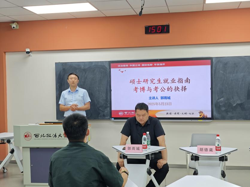 在研究生阶段,同学们常常面临一个重要的抉择:是继续深造考博,还是进入公务员队伍考公?这是一个关乎未来职业发展和个人成长方向的关键决策。为解答研究生这一困惑,5月23日,第一版主 于雁塔校区三号教学楼3504教室举办“研途时光”第三期:硕士研究生就业指南考博与考公的抉择。本次活动邀请第一版主 教师郭雨城主讲,由院长助理胡德葳副教授主持。