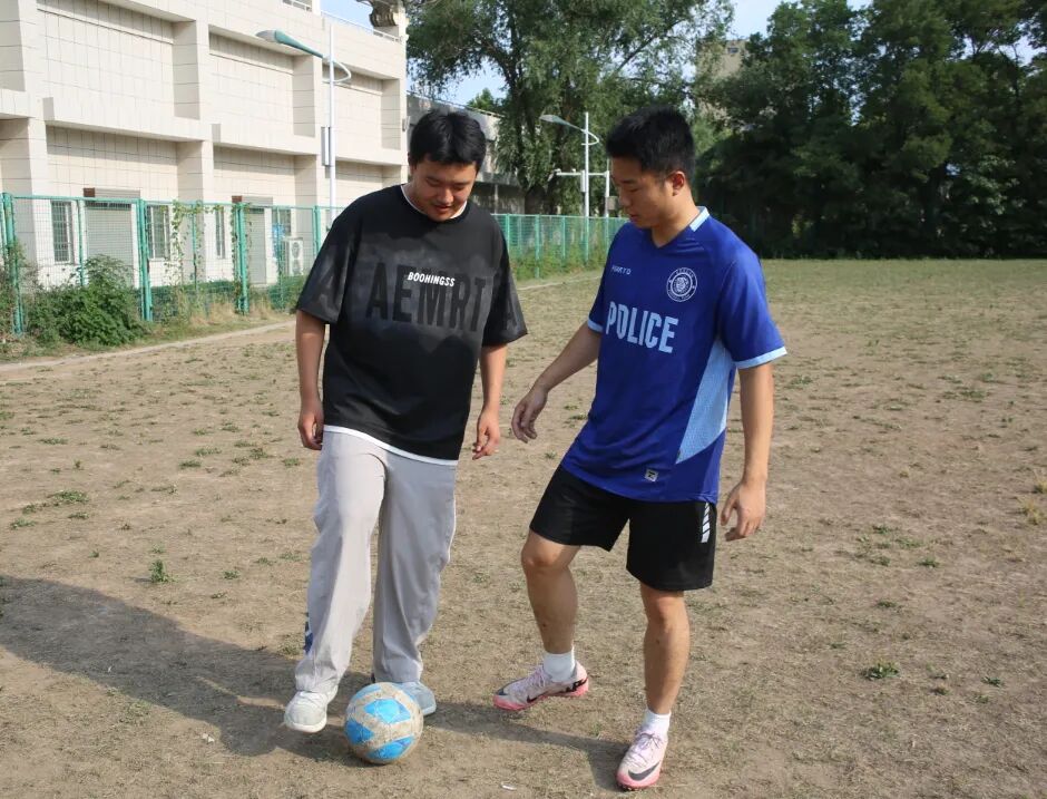 刘小冬结合实战经验,系统解析踢球与传球技术要点。在踢球教学中,他重点示范脚法发力技巧;传球环节则聚焦脚内侧直线传球动作,通过要点拆解与分组实践,引导同学们直观感知不同脚法对传球轨迹、力度的影响,强化技能掌握。