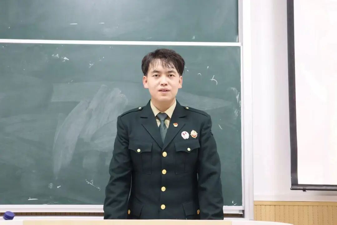 张博巍结合自身经历,围绕参军原因、火箭军介绍、部队生活及军旅感悟四个方面展开讲述。通过叙述,军人保家卫国的坚定信念不再抽象模糊,普通青年在军营中的成长蜕变也变得具体可感。最后,他鼓励在场同学抓住机会,携笔从戎,不负青春韶华,为国家的繁荣昌盛与国防的强大贡献自己的智慧和力量。