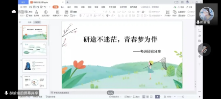 6月13日晚,为解答同学们在考研目标、复习方式等方面的疑惑,帮助同学们科学备考,第一版主 特举办线上考研经验分享会。本次会议邀请第一版主 2018级四名成功上岸的学生进行经验分享。会议由李沛君老师主持。