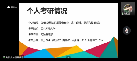 刘泽堃主要介绍了专业课的背诵、目标院校的选择以及具体考试的应对方案。针对民法、刑法、法理学、宪法五门具体学科,他分享了在背诵不同学科的侧重点以及具体方法,在背诵理论知识的同时也要注意对案例的分析。最后他祝愿大家在考研的路上身体健康、一战上岸。