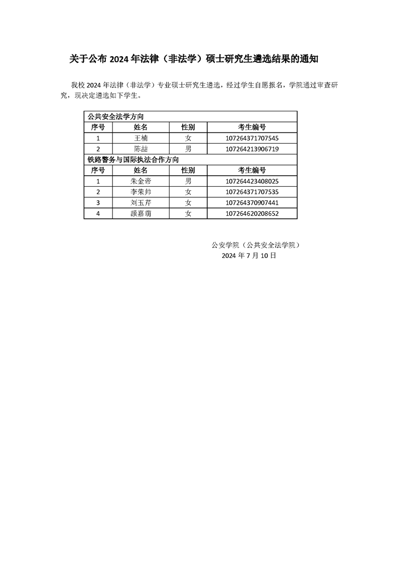 下一篇:关于在2024级法律(非法学)专业录取考生中开展遴选公共安全法学方向和铁路警务与国际执法合作方向的通知