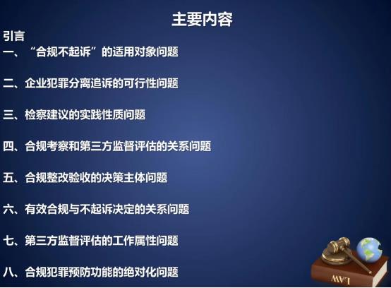 结合理论界和实务部门对企业合规改革过程中出现的若干争议问题,他详细介绍了合规不起诉的适用对象、企业犯罪分离追诉的可行性、检察建议的实践模式、合规考察和第三方监督评估的关系、合规整改验收的决策主体、有效合规与不起诉决定的关系、第三方监督评估的工作属性和合规犯罪预防功能的绝对化等13个重要问题。他指出涉案企业合规改革是一项重大司法改革,在维护社会公共利益方面取得了显著成效,应当转变成“于法有据”的制度实践。