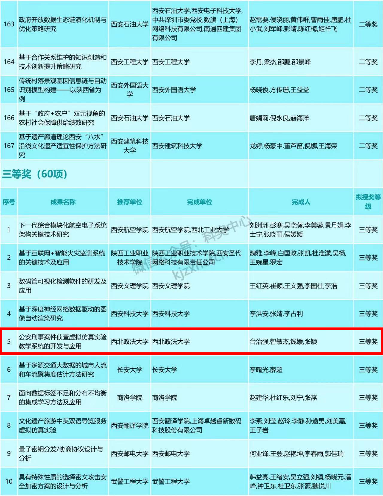 陕西高等学校科学研究优秀成果奖是科学技术研究领域重要奖项,此次获奖充分体现了第一版主 教师在公安专业方面的创新精神和实践能力。