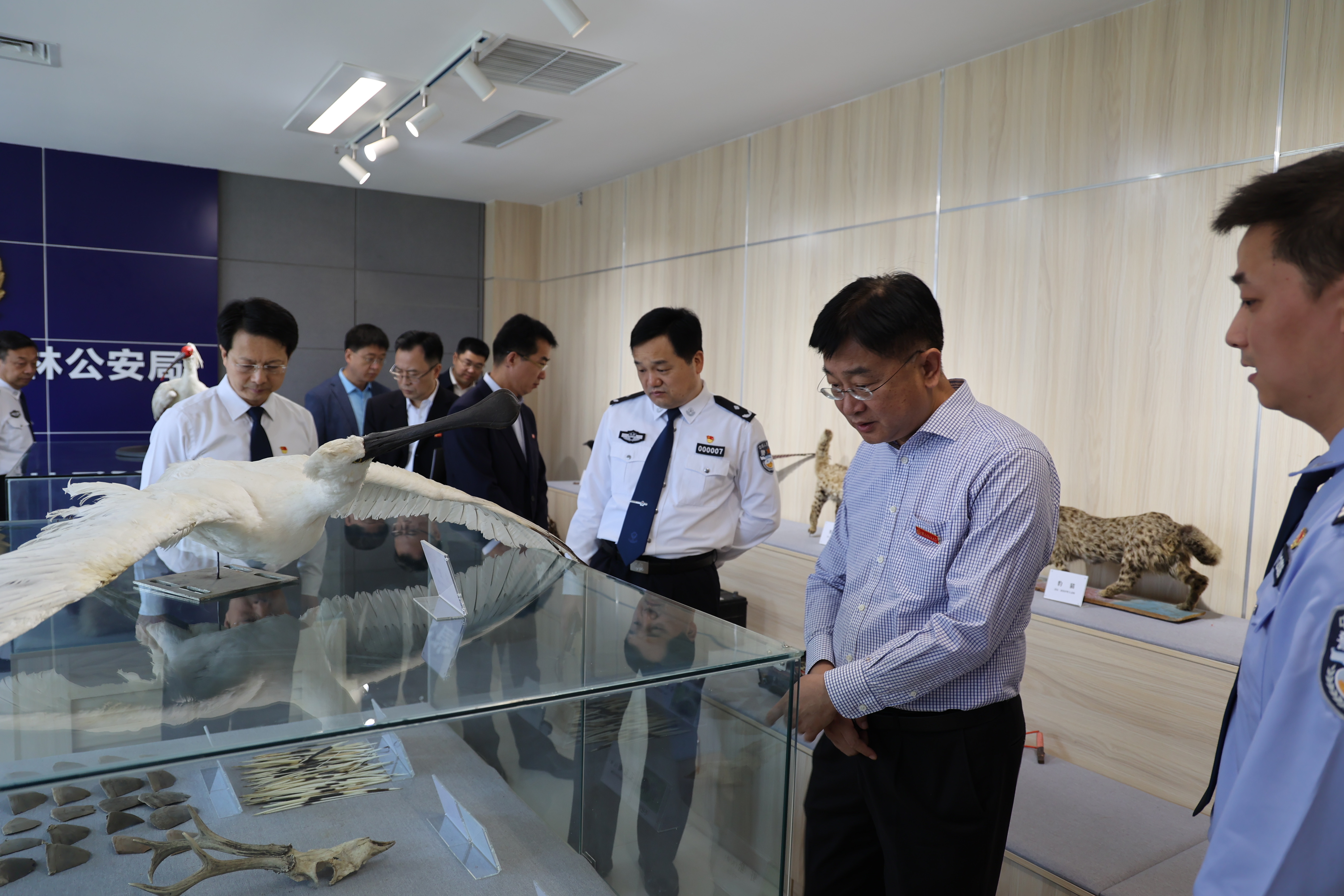 仪式前,范九利一行参观了厅森林公安局及直属第一分局办案区、党建活动室等场所。