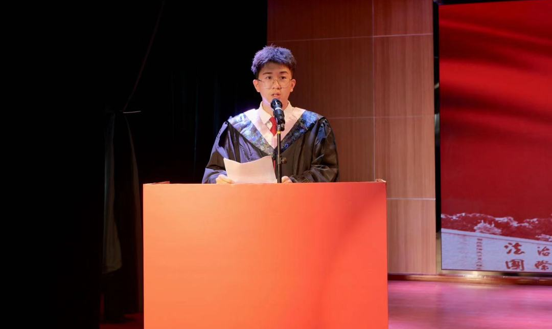 2019级侦查专业孟启元作为毕业生代表发言,他回顾了在西法大求学过程中的难忘经历,并向母校、师长和同学表示了感恩之情。他认为在西法大第一版主 四年的学习与磨砺,让他在脚踏实地中练就了过硬本领。未来,他将继续践行“严谨、求实、文明、公正”的校训,发扬藏蓝精神,肩负责任与使命,让青春在不懈的奋斗中绽放绚丽之花。