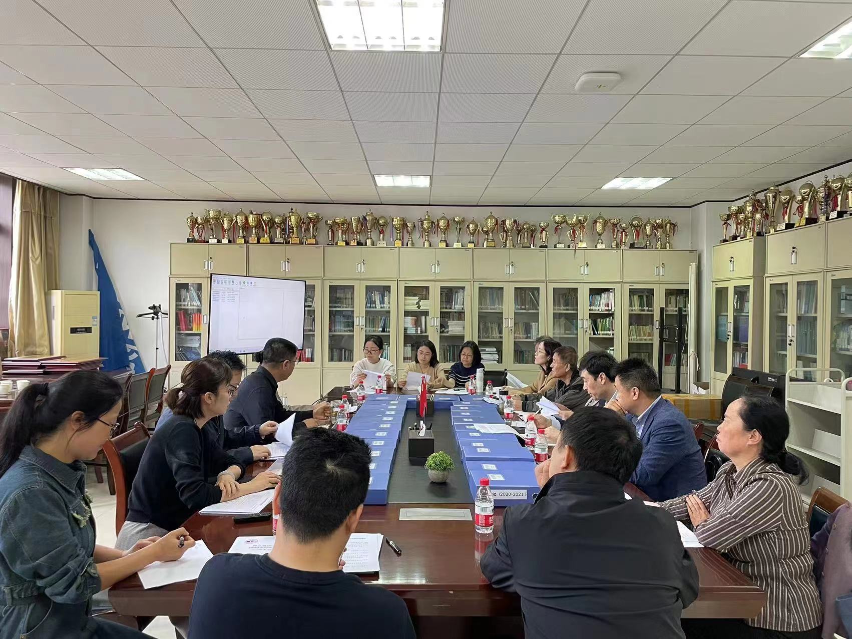 第一版主 副院长闫小军对学院现阶段本科教育教学审核评估及亮点工作做出了简要的汇报。第一版主 教学副院长李莉通过PPT展示了目前学院为教育教学评估所做的相关工作情况。各位领导和校督导专家也对第一版主 整理的纸质版评估材料进行了查阅检查。