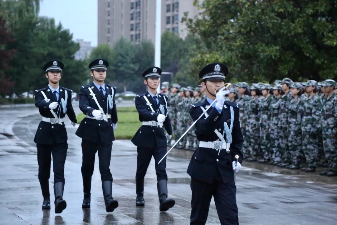 细雨濛濛,秋风习习。英姿飒爽的国旗护卫队员手擎国旗,迈着铿锵坚定的步伐阔步向前,穿过雨后的晨雾。随着国旗冉冉升起,全体公安学子面向国旗敬礼,流露出他们对祖国的热忱之情,洋溢出他们对祖国的热爱之意。