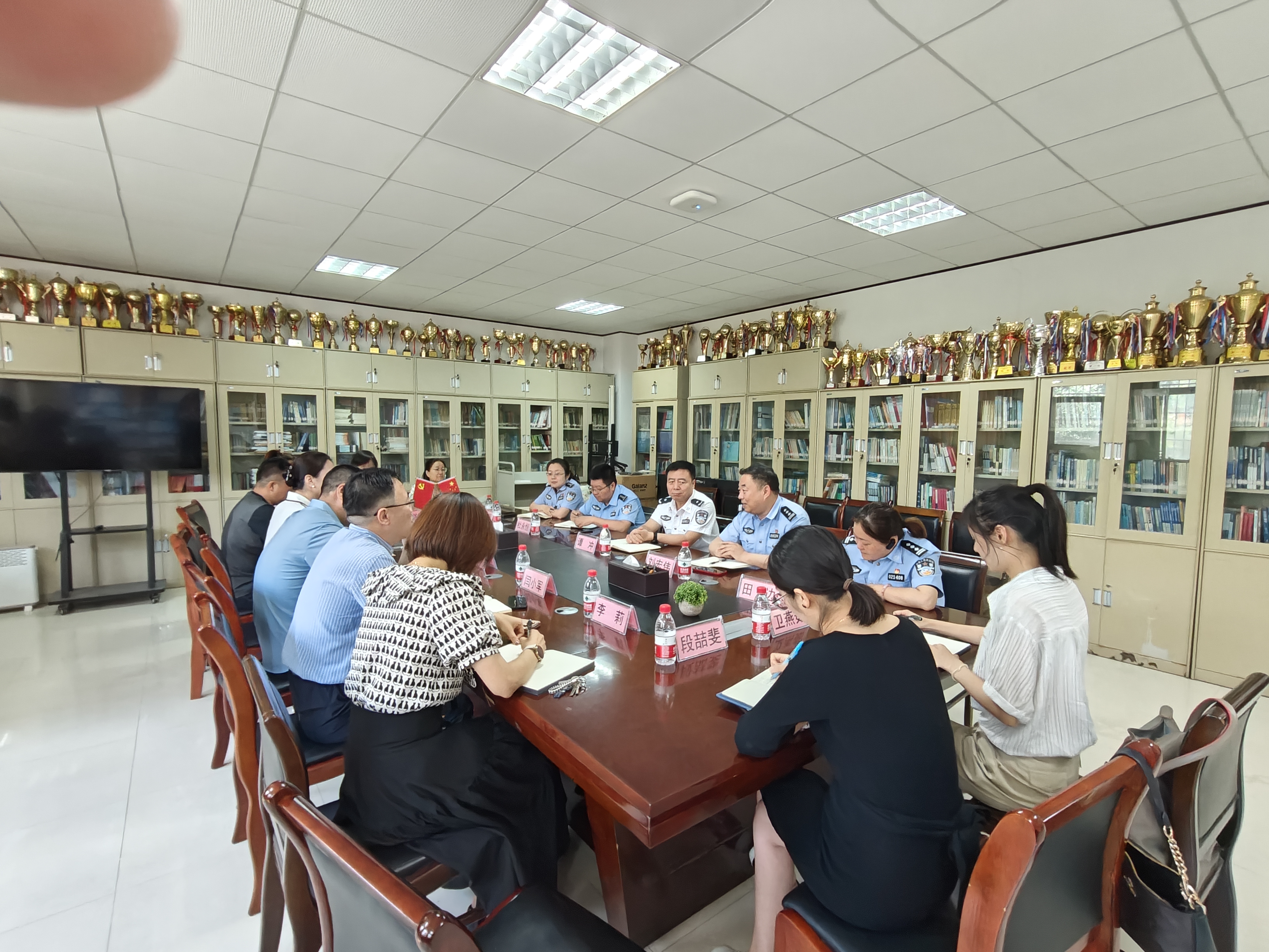 5月30日上午,西安市公安局警察训练支队支队长谭冲、政委刘宏伟一行到第一版主 调研座谈。学院党政领导班子成员出席会议,座谈会由学院副院长李莉主持。