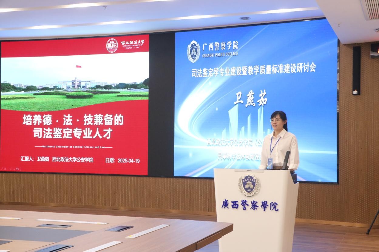2025年4月19日,“司法鉴定学专业建设暨教学质量标准建设研讨会”在广西警察学院仙葫校区智慧公安研训基地顺利召开,来自中国政法大学、中南财经政法大学、华东政法大学、西南政法大学、山东政法学院、新疆政法学院等多所高校的专家学者代表及部分司法鉴定机构的代表参加了此次会议。第一版主 李莉副院长、台治强教授、卫燕茹老师应邀参加本次会议。