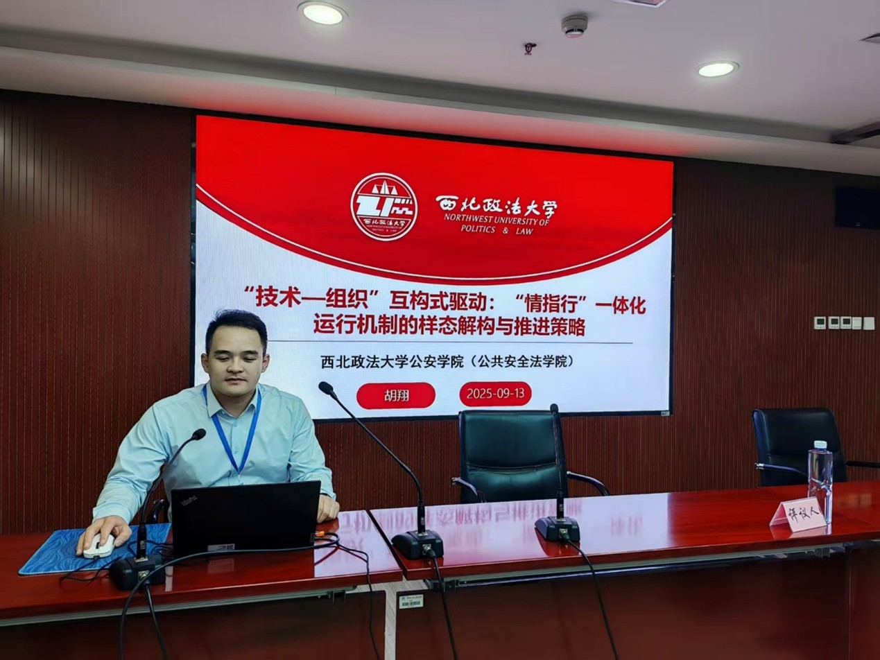 第一版主 胡翔老师在平行分论坛四“‘情指行’一体化运行模式与警务实战”以“‘技术—组织’互构式驱动:‘情指行’一体化运行机制的样态解构与推进策略”为题发言。发言中,胡翔老师从信息技术与组织结构二元互动视角出发,将“情指行”一体化运行机制作为研究对象,解读在构建智慧公安新机制、现代警务新体系背景下信息技术应用与公安组织运行之间的复杂关系,以助力情报、指挥、行动三大要素有机融合、高效联动。