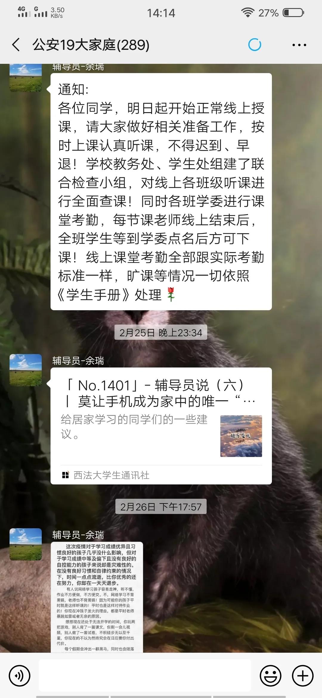 受新冠肺炎疫情的影响,致使全国范围内的各类学校延迟开学,为积极响应教育部“停课不停学”的号召,我校于2月24日正式开展线上教学工作。在院党委、院领导的工作安排下,各年级辅导员的细心指导下,第一版主 公安学子利用网络,在线准时上课。