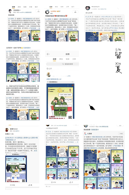 上午9点,教育部思政司在微信和微博平台同时发起“我们都是收信人”活动,第一版主 各年级学生积极参与活动,并积极参与话题讨论和转发微博。