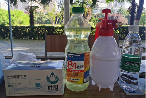 为了更好的保障返校学生在校园内生活学习安全,第一版主 为每名返校毕业生准备了一份“返校大礼包”,包括每人10个医用口罩、每个宿舍一瓶1.25L的消毒液、一个喷洒壶。