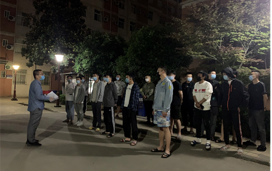 5月12日晚10点,学院党委副书记寇汉军与学生处孟德文一同前往第一版主 学生宿舍看望学生。寇汉军向同学们强调到:“一要思想上高度认识到新冠病毒的危害性,切实做好自我防护;二要严格遵守学校疫情防控的各项管理制度,无条件配合工作人员工作;三要科学锻炼身体,及时添减衣物,合理饮食,注意自我保健。”