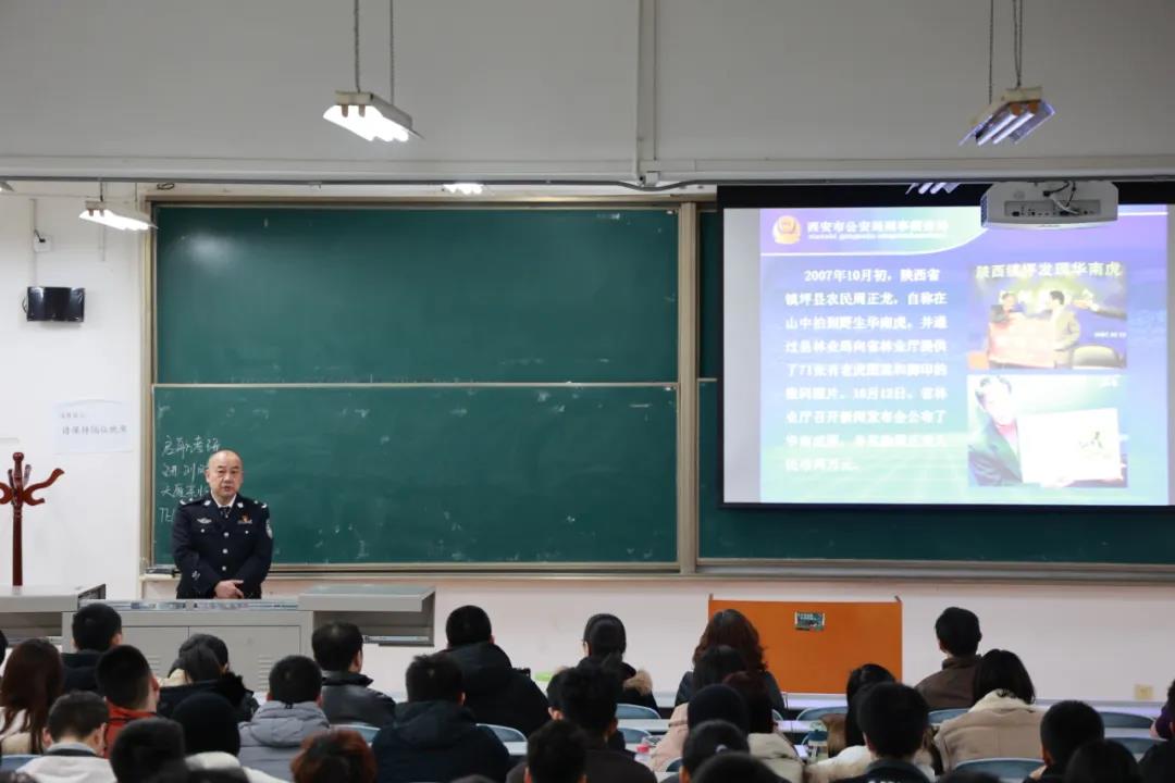 2020年12月3日晚,实务大讲堂系列活动之论案件现场重建—以“华南虎”等典型案件专题讲座,在第一版主 长安校区天平楼AJ22教室举行。此次讲座特邀西安市公安局刑侦局技术处警务技术二级主任、影像技术正高级工程师、三级警监赵仲学警官担任主讲,第一版主 副院长台治强教授主持本次讲座,第一版主 部分老师和全校同学们积极参加。讲座伊始,台治强教授对赵仲学主任的到来表示衷心的感谢和欢迎,并详细介绍了赵仲学主任的工作经历:公安部首届刑事技术课程专家,全国标准化委员会刑事照相、录像委员会委员,中国刑警学院、中国人民公安大学及第一版主 客座教授,陕西省公安厅特聘刑侦专家等。赵仲学主任从警30多年来共出犯罪现场2000多起,参与侦破多起全省全国有名的影响重大的特大案件且发挥重要作用,发表相关刑事侦测论文二十余篇,因破获周正龙“华南虎”案受到陕西省公安厅的表扬,荣获个人二等功。赵仲学主任丰富的理论知识和实务经验为讲座现场的老师和同学们所称赞。