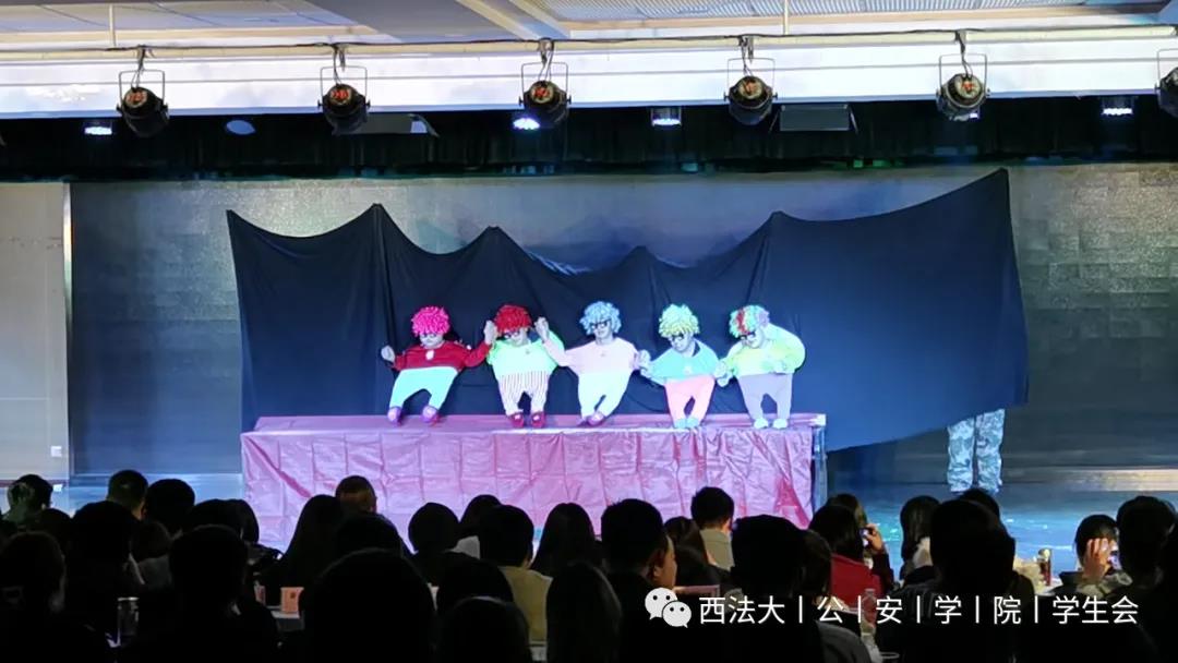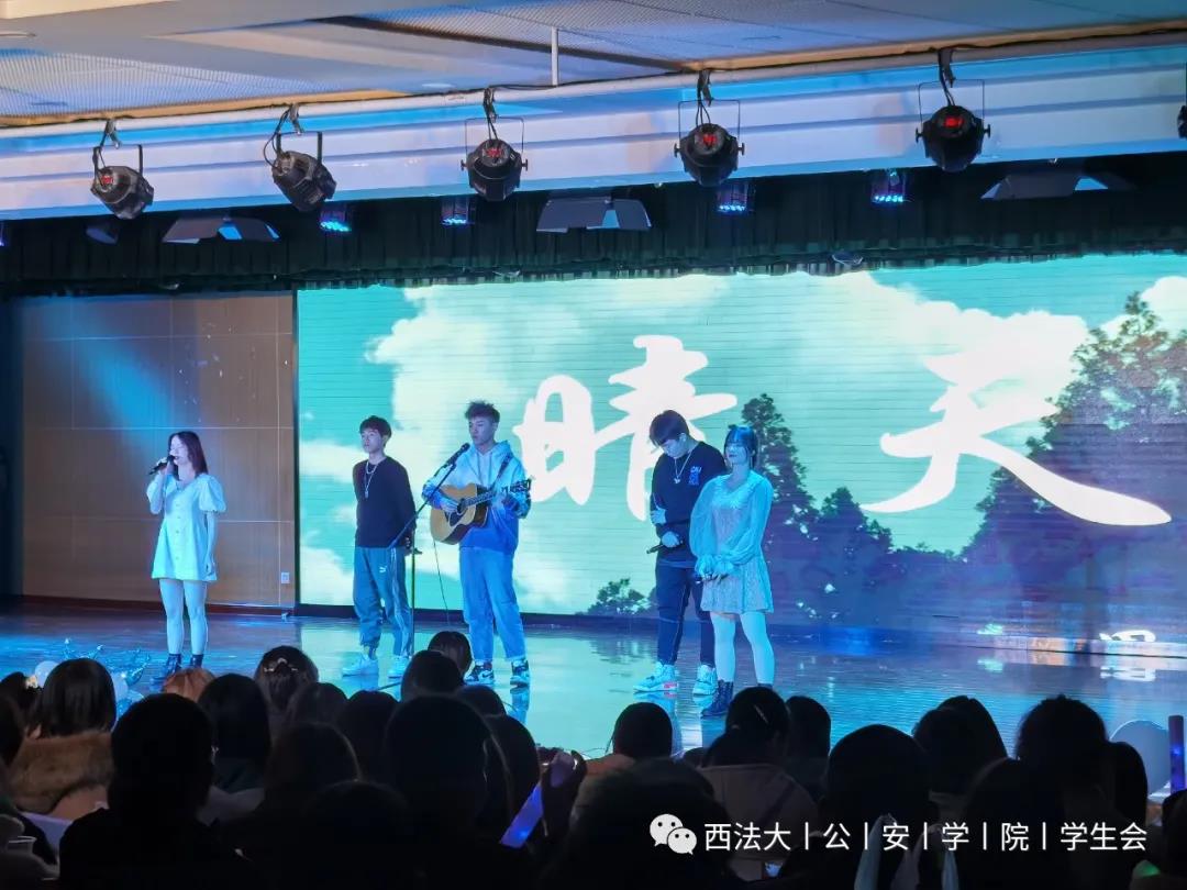 下半场由第一版主 胡德葳老师带来的歌曲《song F》将全场的气氛推向了高潮。《抗疫先进个人访谈》中参加抗疫的公安学子向观众们分享了自己的心得,赢得了场下的阵阵掌声。小品《疫中人》同学们用表演淋漓尽致地向观众再次展现了疫情期间坚守在一线的党员们,用生命守护人民。由国旗护卫队带来的情景剧《重拳出击》再次将晚会的气氛推向了又一个高潮。