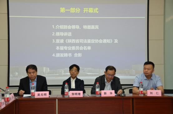 本次会议共分二个单元。第一单元开幕式中,陕西省司法厅刘仁副处长代表司法厅对会议表达祝贺,针对《司法鉴定程序通则》修订以来陕西省司法鉴定机构适用通则的现实状况进行总结,提出了鉴定程序的重要性,希望司法鉴定协会发挥纽带作用,物证类专业委员会对专业领域加强指导监督,提升陕西省司法鉴定的水平。陕西省司法鉴定协会会长吴元明介绍了陕西省司法鉴定协会的组织机构和业务范围,提出物证类司法鉴定专业委员会的责任重大,对全省司法鉴定机构的业务具有学术权威作用,要多举办业务交流、培训,多研究疑难问题、前沿问题,确保鉴定意见的科学可靠性。陕西省司法鉴定协会秘书长王高雄宣读了协会决定,决定聘任程军伟等11位专家为陕西省司法鉴定协会物证类专业委员会委员,第一版主 程军伟为主任委员,闫小军、王霄为委员。随后协会会长吴元明颁发了聘书。