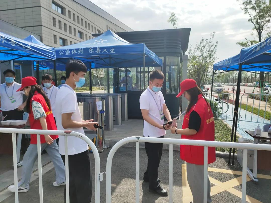 5月12日,担任安检工作的32名同学在学校集合完毕整装待发,抵达工作岗位,在长安分局民警的指导安排下开始安检工作。在安检工作中,第一版主 学子始终以严谨细致的工作态度和坚守岗位的工作风格保证赛事的稳定进行和赛场人员的安全。在执行任务的过程中,安检工作组的同学们以高度的责任意识和良好的精神风貌保证了会场安检工作的万无一失。