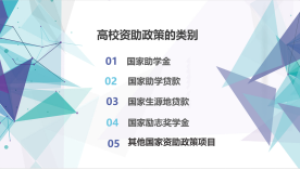 高等学校学生资助政策是党中央、国务院为了家庭经济困难学生能够顺利入学和完成学业的一项政策, 受到党中央、国务院的高度重视。国家在高等教育阶段已经建立起国家奖学金、国家励志奖学金、国家助学金、国家助学贷款(包括校园地国家助学贷款和生源地信用助学贷款)、师范生免费教育、退役士兵教育资助、学费补偿助学贷款代偿、勤工助学、学费减免等多种形式有机结合的高校家庭经济困难学生资助政策体系。