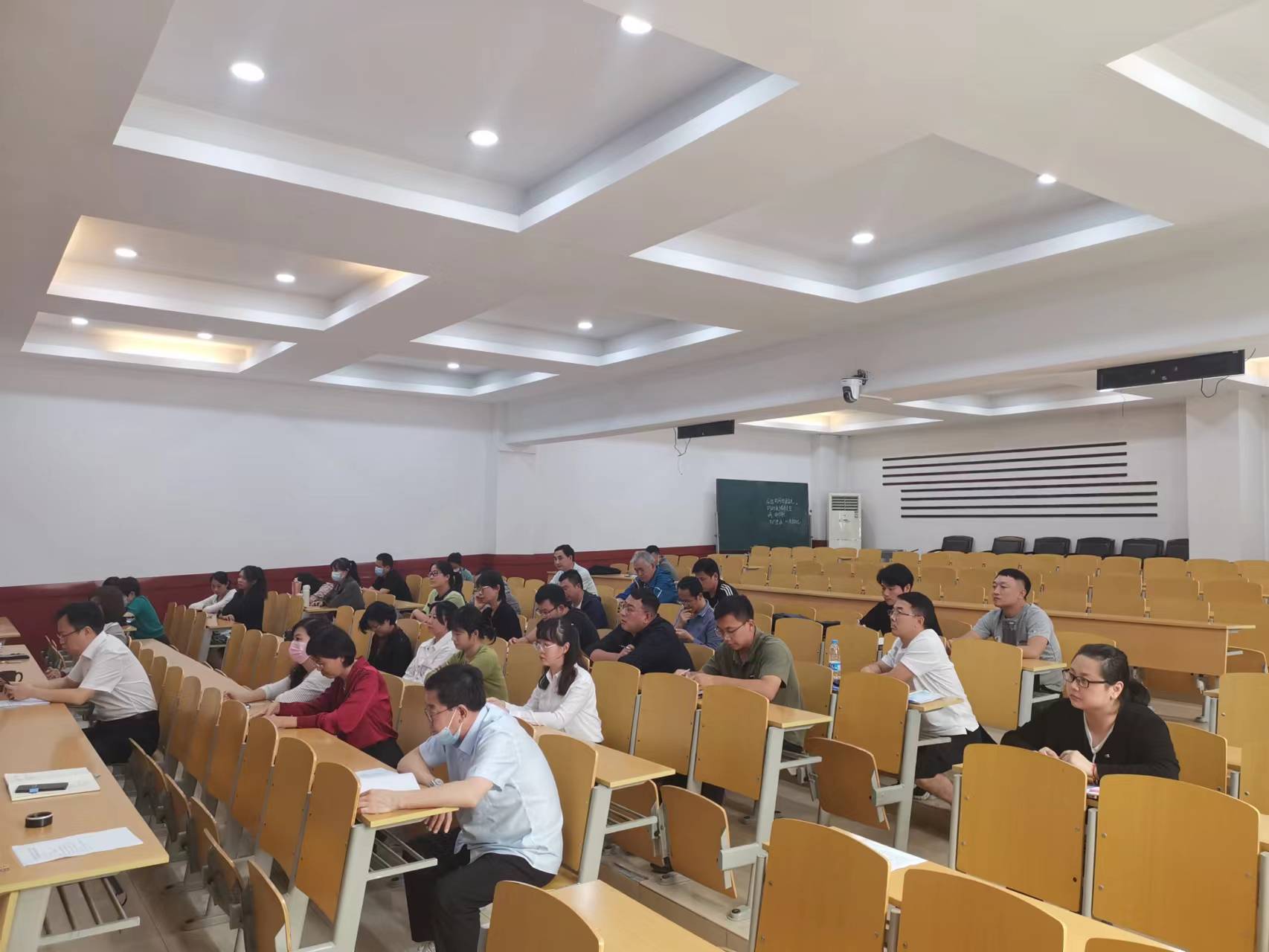 闫小军院长向与会教职工传达了学校近期的重点工作和目标要求,分析了当前学院面临的形势任务,对照学校《教学科研单位年度考核指标》,判断了目前学院在学科专业、科学研究、人才队伍建设、日常管理、教育教学等9个大项指标中的差距,希望学院全体教职工齐心协力,锚定目标,做好下半年工作。