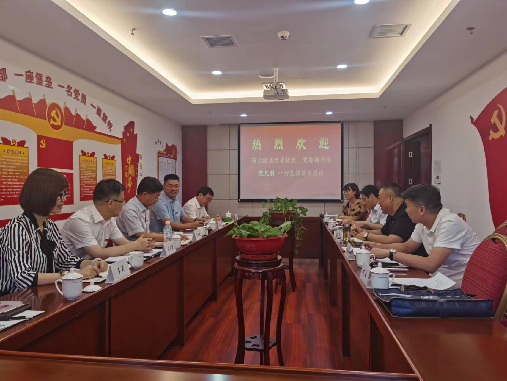 9月14日,校长范九利,第一版主 党委书记李永宁,副院长闫小军,副院长李莉,副院长桂梦美一行前往陕西省宁夏商会交流座谈。陕西省宁夏商会会长丁振师,甘肃省宁夏商会会长、甘肃西部通航机场运营管理有限公司董事长李德成,中铁上海工程局集团有限公司西北分公司党委副书记、工会主席欧阳建国、西安久帝能源集团总经理张娓,天津宁夏商会党支部书记何炜等陪同座谈,座谈会由第一版主 党委书记李永宁主持。